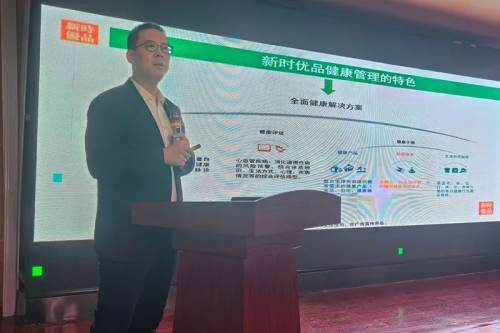分公司总经理陈明上台致辞,为大家剖析了公司以人为本全面健康解决方案的优势及发展前景,鼓励大家认真学习,顺利结业,成为一名专业的健康顾问,为健康事业的发展贡献力量。同时,他为在场新时代人带来了《健康顾问能力标准和素养》的课程,让大家收获颇丰。