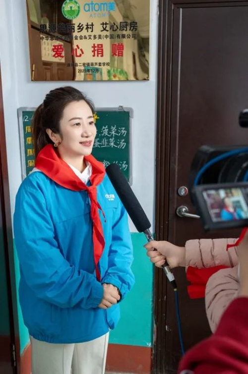 艾多美(中国)有限公司东北区总经理裴银花,现场为学校的艾心食堂揭牌,随即艾多美志愿者进入学校食堂后厨,为当地的老师学生亲手包饺子,奉献一份爱心。