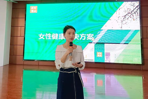分公司讲师王娇通过女性健康解决方案的讲解,阐述了内养外调的重要性,展示了丹凤水光臻试用前后的对比效果,引得参会者阵阵掌声。内养气血外调护肤相结合,实现由内而外的美丽,这一理念深入人心。