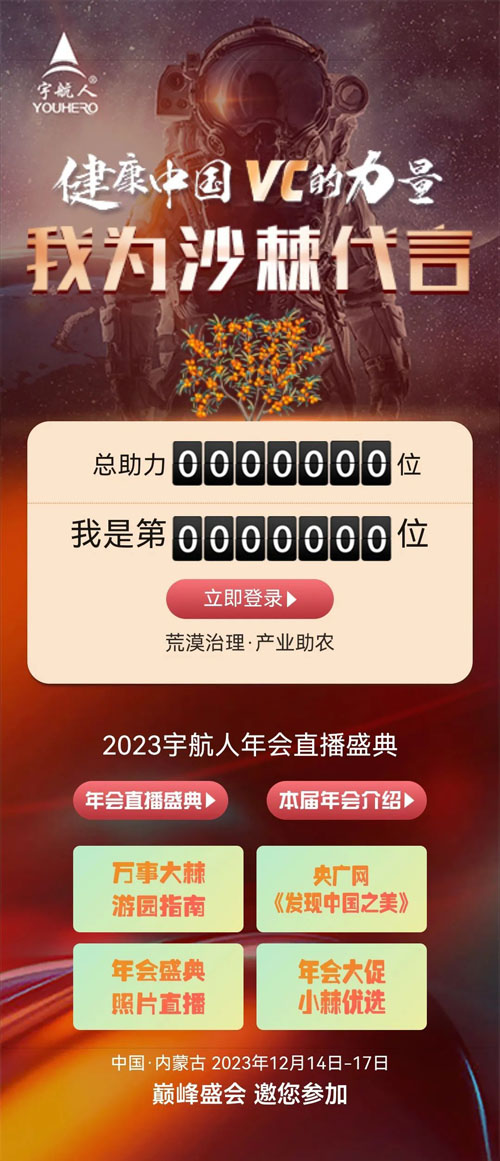 健康中国,VC的力量——2023宇航人年会直播盛典将于12月15日,在内蒙古呼和浩特盛大举行。