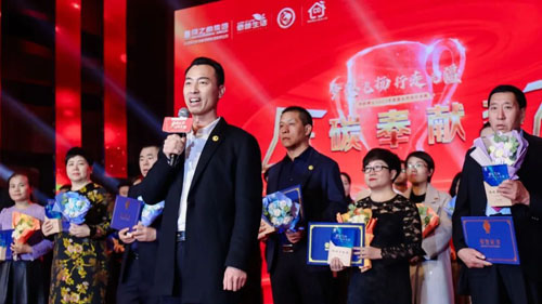 ▲低碳市场董事郝天亮和张文娟为获奖者颁奖