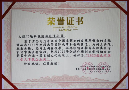 双迪公司荣获2023创业中国·受人尊敬企业奖