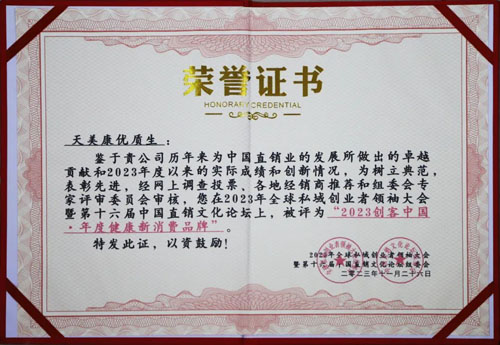 天美康优质生荣获2023创客中国·年度健康新消费品牌