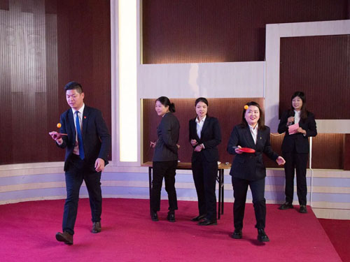多项有趣的游戏互动在整个会议中不断穿插,乒乓球运输、筷子夹黄豆、吹气球、绑腿两人踩气球等快乐互动小游戏考验了大家的默契度,也为现场带来了一片欢声笑语,把大家瞬间带入到了欢乐的氛围当中,每个人脸上都洋溢着喜悦的笑容。