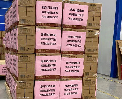 绿叶向甘肃积石山县捐10万元及586箱物资