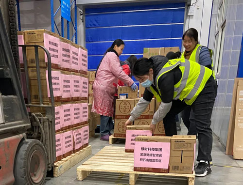 绿叶科技集团董事长徐建成得知灾情发生后,第一时间安排,紧急联络积石山县红十字会,向地震灾区的积石山县红十字会捐款10万元,紧急支援灾区救灾、居民生活重建,帮助灾区群众战胜灾情。同时,徐董亲自指挥绿叶超市西安分仓紧急调集生活物资586个大规格箱(含八宝粥、饼干、沙琪玛、奶茶、牛乳茶、全脂奶粉、奶昔以及纸巾、纸尿裤等食品和生活用品),于19日晚深夜装车,由加长货车连夜运往灾区一线,为灾区同胞及时送上最紧缺的生活物资。