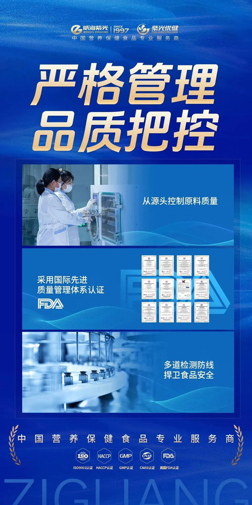 相隔8个月,威海紫光南波湾公司成为威海紫光第三家通过美国FDA认证的智能生产工厂,程程跃进,向新而为。这是威海紫光国际化战略的新起点,也是威海紫光匠心精研,守正出新的新标志。 未来,威海紫光将持续以国际化的视野,深耕布局大健康产业,积极拓展国际市场,加强与全球合作伙伴的战略合作,为全球消费者提供更多安全、高效、优质的健康营养品。