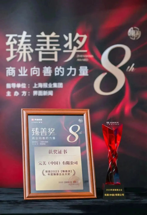 12月13日,上海报业集团丨界面新闻在上海中心界面财经盛典公布了2023【臻善奖】终榜名单。本次评选历时接近5个月,最终评选出年度臻善企业,完美公司凭借积极践行社会责任,推动社会高质量发展,与华为云、中国海洋石油、渣打银行瑞银集团等30家知名企业,荣获“2023【臻善奖】年度臻善企业”大奖。