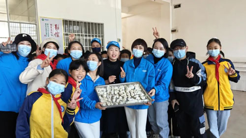 捐赠仪式后,艾多美志愿者走进学校食堂后厨,和老师同学们一起包饺子,大家在一起分享美味,爱与分享在艾多美志愿者与老师同学们之间温暖流动,浓浓“艾”意温暖着校园。