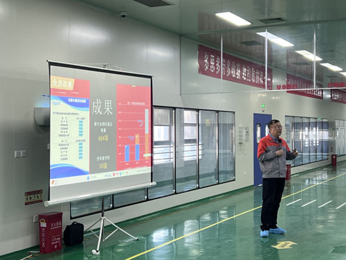 会议最后,王伟分别从指标达成、管理亮点、后续改善等方面对生产基地2023年整体工作情况进行了总结,提出要在现有的基础上增强忧患意识,强调了改善与创新文化的重要性。并对2024年工作进行了规划:以供应链高质量交付为主旨,分别从对内及对外两个维度进行剖析;对内:精益专项继续推进、数字化升级、人才培养,对外:透明工厂打造、ESG体系搭建。推进从原料包材进厂-生产制程-成品出库实现全制程数字化集成管理,智能化转型升级。通过设计+精益+数字,构建与世界美妆科技馆匹配的高颜“值”、数“智”化工厂;通过工业之美管理工厂,进而引领行业发展并赋能公司发展!