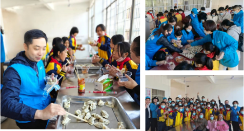 捐赠仪式后,艾多美志愿者走进学校食堂后厨,和老师同学们一起包饺子,大家在一起分享美味,爱与分享在艾多美志愿者与老师同学们之间温暖流动,浓浓“艾”意温暖着校园。