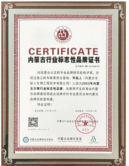 - 宇航人两款沙棘产品斩获内蒙古 “名优特”