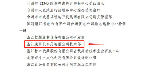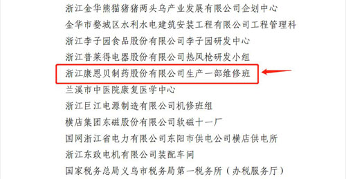3月31日,浙江省总工会下发《关于表彰 2023 年浙江省五一劳动奖状、奖章和工人先锋号的决定》,浙江康恩贝制药股份有限公司生产一部维修班和浙江康恩贝中药有限公司技术部,2个团队获2023年浙江省工人先锋号荣誉。