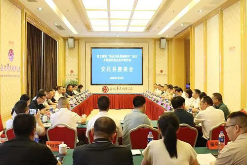 湖南省工商联“民企兴县 跨越同行”助力乡村振兴重点县专项行动走进安化。绿之韵集团党委书记、绿之韵公益基金会副理事长刘云、产品总监王薇受邀参加活动。