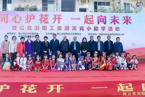 致公党浏阳工委走进张坊镇洞溪完小开展“同心护花开,一起向未来”助学活动。绿之韵公益基金会通过湖南省致公助学通道向洞溪完小捐赠20万元爱心款项,用于对困难学生的资助,并建设一个蓓蕾书屋,打造一个致公助学劳动实践基地。