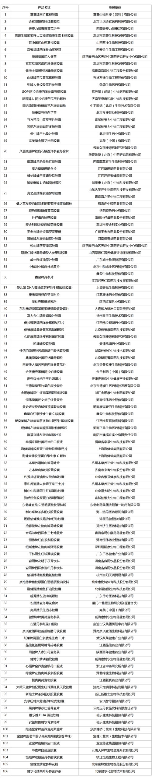 2024年1月5日,国家市场监督管理总局食品审评中心发布保健食品批件(决定书)待领取信息,涉及106款保健食品。名单如下: