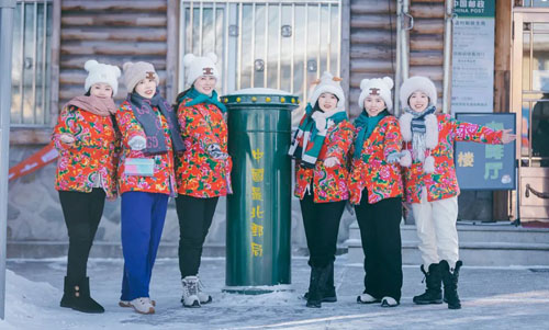 北极村,是我国大陆最北端的临江小镇,与俄罗斯隔江相望,素有“神州北极”和“不夜城”的美誉。在北极村的村落里藏着各个“最北打卡点”——最北邮局、最北哨所、最北第一家、神州北极、北极沙洲等。绿之韵家人们在最北邮局寄出一张张明信片,承载着来自极北之地的祝福。在北极村,绿之韵家人们乘坐着东北最原始的交通工具“马雪橇”,在黑龙江江面观赏冬季捕鱼。在鄂温克驯鹿部落,绿之韵家人们见到了精灵般的驯鹿,家人们在这里亲手喂养驯鹿,与驯鹿来了一次“林深时见鹿”双向奔赴。