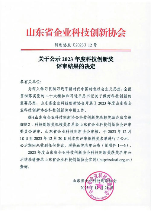 安然集团研发部在收到申报通知后,迅速响应,积极申报2023年度山东省企业科技创新协会科技创新奖优秀项目类。