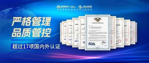 威海紫光凭借强大的研发实力和严格的质量管理,先后获得GMP、ISO、HACCP、CNAS、FDA等超过17项国内外认证。正是这种对质量的坚守,让威海紫光的产品在市场上赢得了良好的口碑和赞誉。