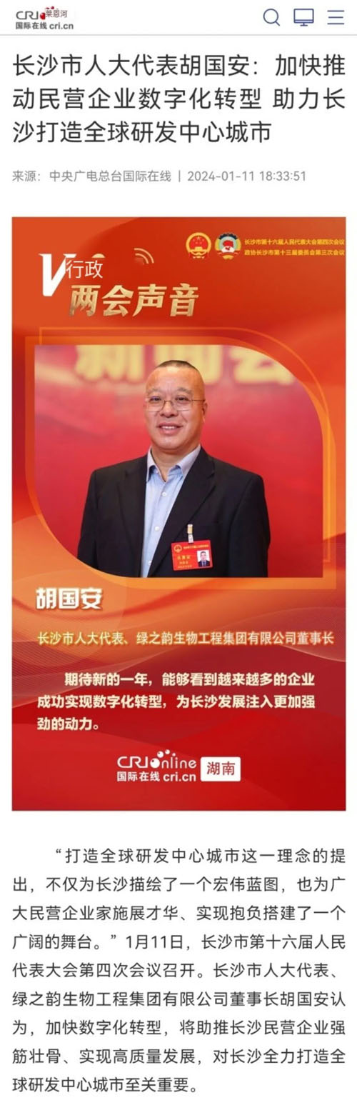 绿之韵胡国安出席长沙市十六届人大四次会议