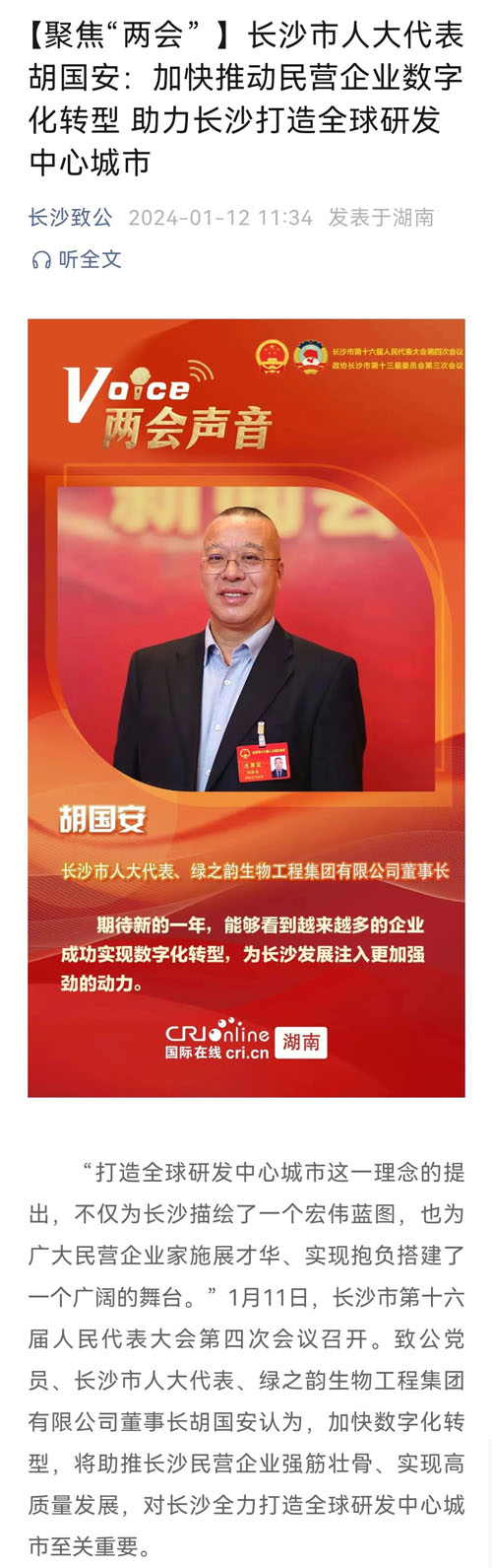 绿之韵胡国安出席长沙市十六届人大四次会议