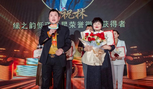 ▲五星荣誉徽章姜爱娣发表获奖感言