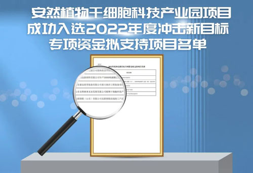 经过区市审核、政府各部门论证等严格的筛选环节,山东安然纳米实业发展有限公司植物干细胞科技产业园项目成功入选2022年度冲击新目标专项资金拟支持项目名单。