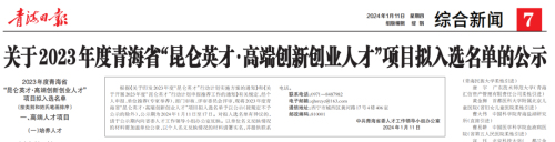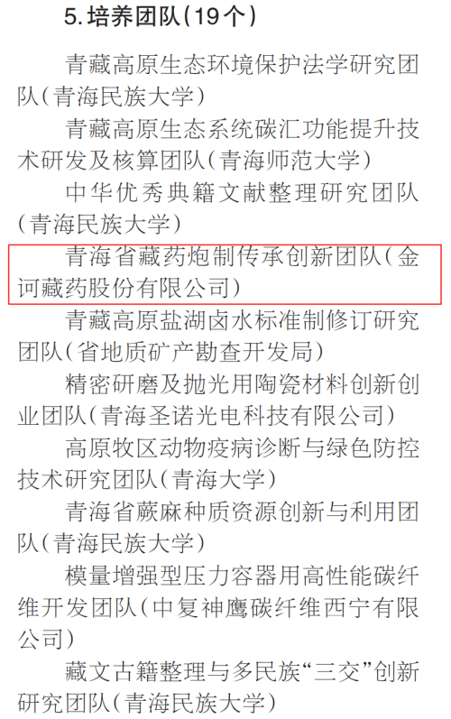2024年1月11日,2023年度青海省“昆仑英才·高端创新创业人才”项目拟入选名单公示,金诃藏药炮制传承创新团队成功入选培养团队名单。