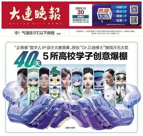 大连晚报对“正青春”数字人IP设计大赛进行了整版报道