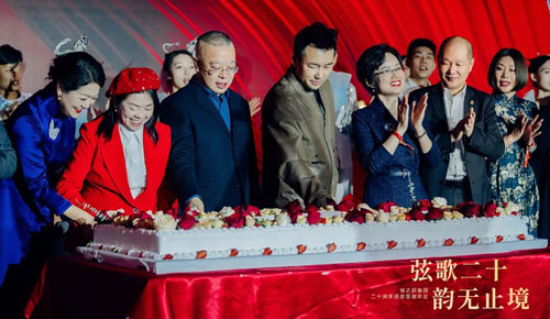 领导嘉宾共同切生日蛋糕,祝福绿之韵二十周年生日快乐