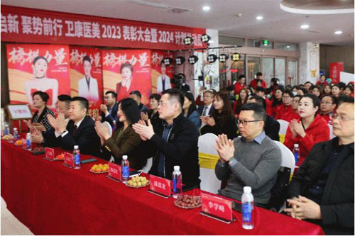 卫康生物集团董事长、总裁王宗继、卫康生物集团常务副总裁刘中伟、卫康生物集团财务中心总经理梁菲、卫康医美董事长朱凤兰、卫康整形兼苏州卫康医美总经理李芳、临沂微整美容医院总经理梁爱松、临沂华纳传媒总经理王开山,卫康医美特邀贵宾陈伟军、陈震龙、靖美丽、刘威廉等事业合作伙伴,及200余名卫康医美家人共襄盛事,序启2024发展新篇章。