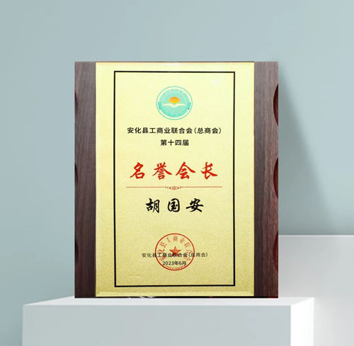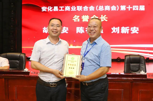 2023年6月16日,安化县工商业联合会(总商会)第十四届会员代表大会召开。绿之韵集团董事长胡国安荣任名誉会长,安化县政协党组书记、主席胡能华为胡国安董事长授牌。展示新作为,创造新业绩,为推动家乡经济发展,社会全面进步,实现高质量发展贡献出自己更多的力量!