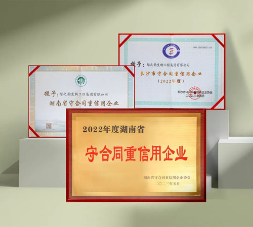 2023年,绿之韵集团凭借完善的企业诚信建设体系与科学的企业管理水平再次荣登榜单,并被授予“连续十五年以上湖南省守合同重信用企业”、“长沙市守合同重信用企业”荣誉称号。