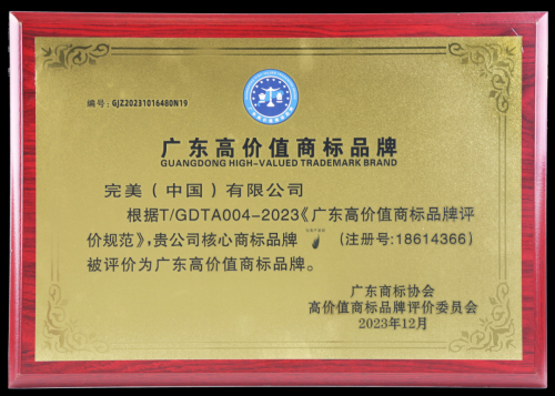 完美公司的核心商标“图片”凭借广泛影响力和市场认可度,从众多优秀品牌中脱颖而出,成功入围国家首批“千企百城”商标品牌价值提升行动的企业商标品牌名单。