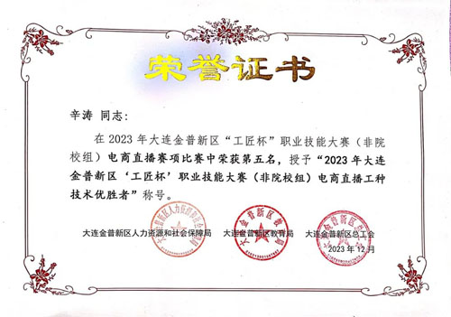 2023年大连金普新区“工匠杯”职业技能大赛成绩公布,双迪股份三名参赛选手在电商直播赛事中取得第一名、第三名、第五名的好成绩。分别荣获电商直播工种技术标兵、技术能手、技术优胜者荣誉称号。