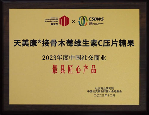 双迪股份旗下产品—天美康®接骨木莓维生素C压片糖果喜获2023年度中国社交商业“最具匠心产品”荣誉。
