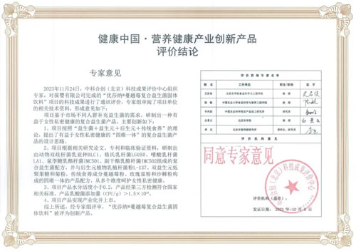 “UFood营养健康食品科技创新评价”活动组委会出具的评价结论