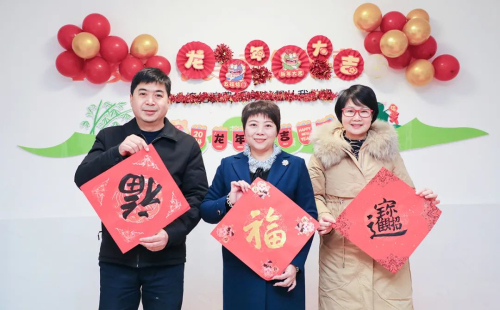 龙年新春将近,2024年2月4日上午,长沙市工商联机关工会、青工委在机关食堂举办“迎新春 庆团圆 送福字 包饺子”主题活动。中共长沙市委统战部副部长、市工商联党组书记何惠风出席。绿之韵集团党委书记、绿之韵公益基金会副理事长刘云与部分民营企业家代表一起受邀参加活动。