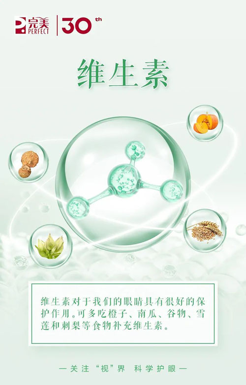 维生素A参与眼表上皮细胞的代谢、生长和分化;维生素B2缺乏会导致眼球结膜充血,角膜周围血管增生;而维生素C、维生素E具有抗氧化功能,可以延缓眼球功能的衰老,增加视神经的营养能力,降低各种老年性眼病的风险[8]。