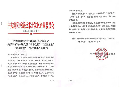 会上,还对浏阳经开区非公企业第一届党员“销售之星”“工匠之星”“科创之星”“生产能手”的获得者进行了表彰。绿之韵集团科研中心党支部书记贺炜获得“科创之星”称号,绿之韵保健日用品党支部党员胡树锋获得“生产能手”称号。