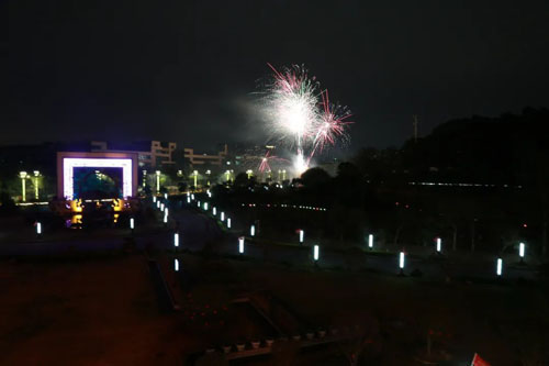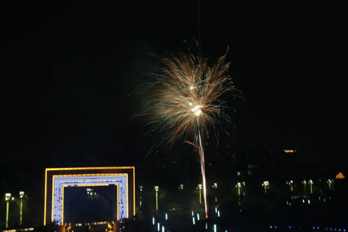 晚宴后,在金科伟业(中国)总部园区开始了烟花汇演,随着“砰砰”的声响,天空出现五颜六色的花朵,百花齐放,漆黑的夜空顿时成了花的海洋,姹紫嫣红。一朵朵烟花,直冲云霄,闪耀着缤纷的光芒。随着烟花的绽放,金科伟业(中国)新年愿望也一同绽放,新年梦想正式启航。