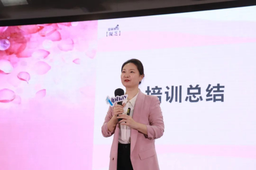 安惠商学院培训经理倪丽丽带领大家对本次培训进行了总结和梳理,帮助大家明晰角色,消化课程,并发布了本次培训的行动计划,呼吁鼓励大家充分运用所学,持续行动,总结提升,做好美容沙龙,持续传播美,塑造美,绽放美,争做合格的安惠国际美容导师。