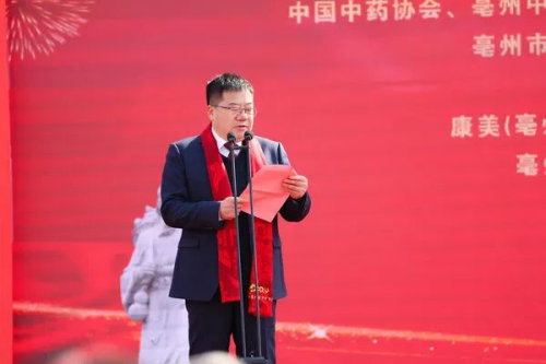此次开市大典由中国中药协会、康美药业,亳州市药业发展促进局、卫生健康委员会、文化旅游体育局等单位主办。亳州市委常委、常务副市长左龙,中国中药协会常务副会长吴宪,中华全国工商业联合会医药业商会副秘书长、会员部部长殷海峰,康美药业董事、党委书记米琪,北京同仁堂集团副总经理文勤等出席大会并先后致辞。