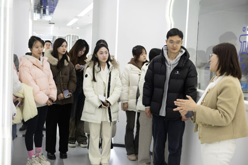 杜莉莉一行首先参观了福瑞达生物股份研发创新中心透明实验室,详细了解福瑞达化妆品的研发理念、配方及产品开发体系。近年来,在鲁商集团“12345”高质量发展战略的引领下,福瑞达生物股份持续加大科研投入,以制药理念研发化妆品,构建起了“5+N”技术矩阵和品牌赛道,在玻尿酸护肤、微生态护肤、精准护肤等领域处于行业领先水平,拥有相关专利120余项。