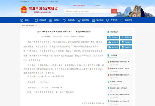 3月5日,烟台市发展和改革委员会举办“亲清发改会客厅”上发布了烟台市2024年首批诚信典范企业名单,烟台新时代健康产业有限公司(以下简称:烟台健康公司)被选为第一批“烟台市诚信典范企业”。