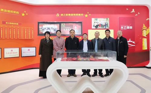 随后,领导一行来到绿之韵集团,参观了国际会议中心展厅、党建文化教育基地。劳嘉总裁详细讲解了绿之韵集团的产业布局、产品生产、文化品牌建设、公益慈善活动及非公党建工作的开展情况。领导一行对绿之韵深耕大健康产业、积极投身公益慈善事业及“家的文化、水的精神”的企业文化理念给予高度评价和赞许。