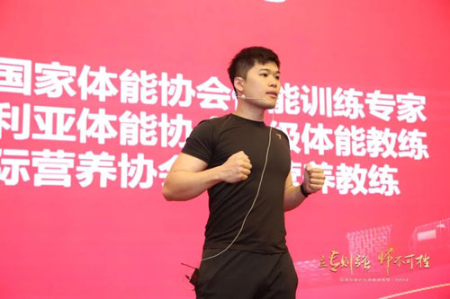 培训课间,美国国家体能协会体能训练专家,澳大利亚体能协会一级体能教练,国际营养协会运动营养教练李德龙现场指导大家科学运动健身。