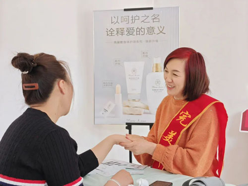 当天正值女神节,完美吉林分公司还贴心地为大家进行了瑪麗艷润手霜的体验,通过贴心的肌肤养护,给大家温馨的呵护。