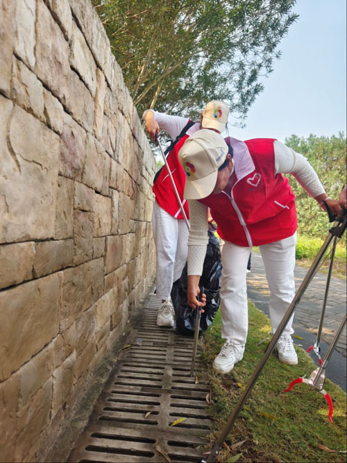 活动开始前,志愿者们早早拿出提前准备好的捡拾垃圾的工具,以及可降解垃圾袋,两两一组进行区域划分,有的负责沿江步道的绿化带,有的负责临江的台阶,还有的负责步道的排水口。分工之后,安利志愿者们拿起工具,认真清理沿岸的垃圾。