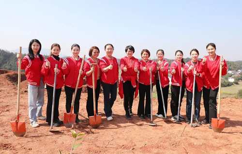 春风吐绿、草木初萌。到达洞阳镇义务植树基地后,林业站易申海站长为大家讲解了种植的步骤和要点,绿之韵的党员同志们在学习了种树的相关知识后,斗志昂扬,撸起袖子,以饱满的状态、实干的精神投入到植树活动中,挥锹铲土、扶苗培土,有条不紊完成每道工序,齐心协力栽种下一棵棵树苗,确保栽一棵活一棵,植一片绿一方。绿之韵国际大酒店党支部书记胡均安现场指导大家栽种技巧和方法,并表示,这不仅是一次植树造林的党日活动,更是一次绿色发展的宣传教育。通过开展植树节主题党日活动,绿之韵的党员同志们充分展现了勇担重任的先锋模范作用,发挥了共产党员的团队合作精神,以实际行动争当新时代“绿水青山就是金山银山”理念的传播者和践行者,共同为建设美丽浏阳增绿添彩。